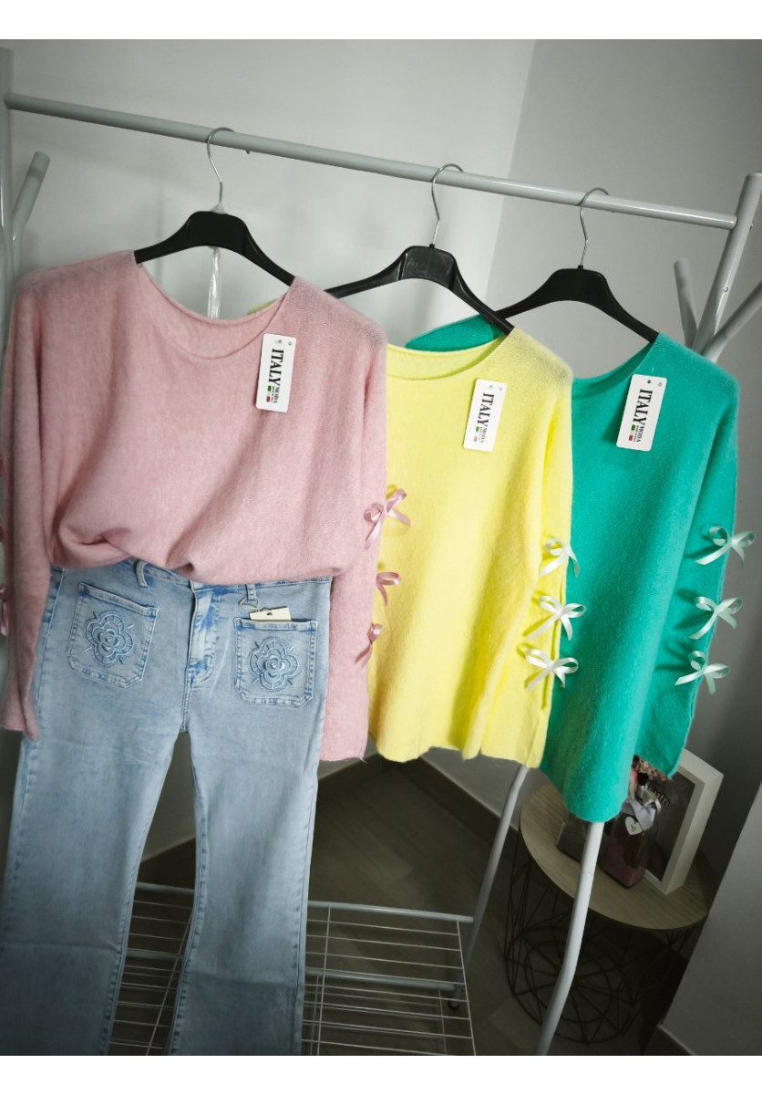 Jersey punto muy suave, con aperturas en los brazos y lacitos, talla única hasta 44