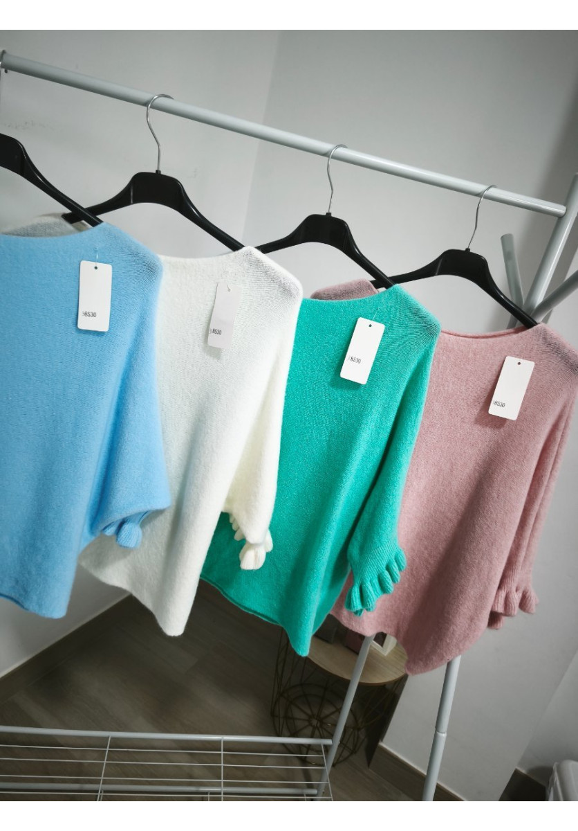 Jersey de punto suave, manga corta con volante, talla única hasta 44