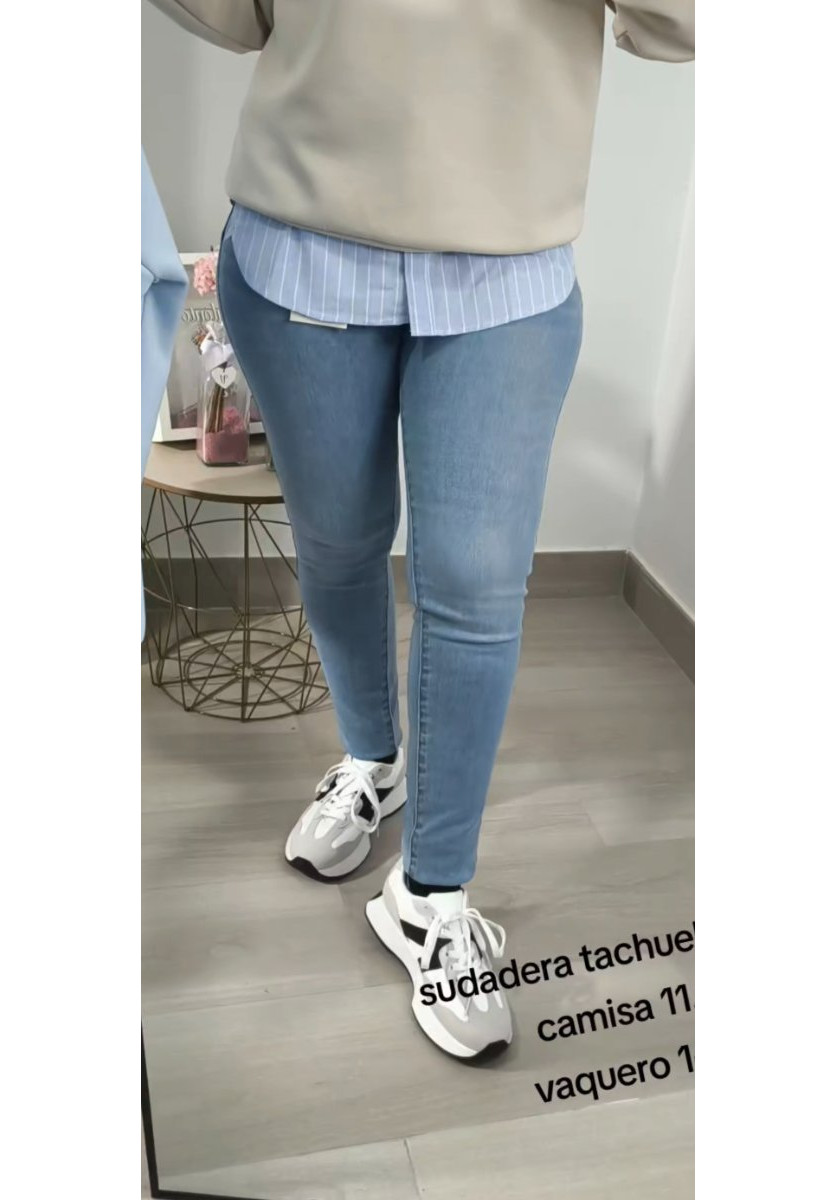 Vaquero tono medio, modelo skinny -5kg , es recomendable coger una talla menos.