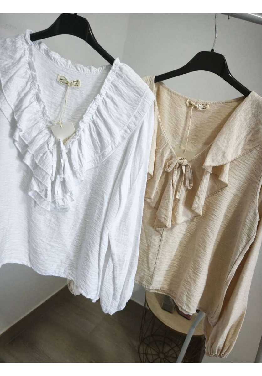 Blusa con volante al cuello, tejido suave y cómodo, talla única hasta 40, 42
