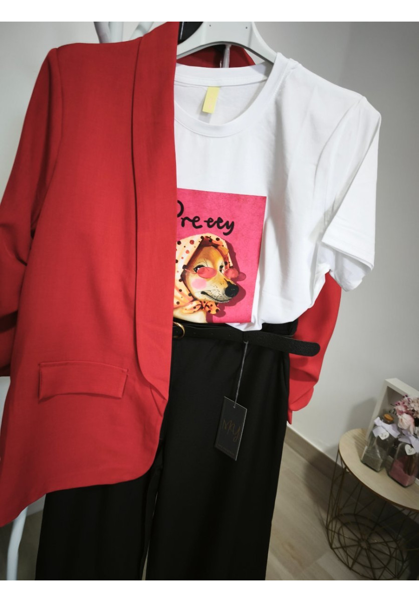 Camiseta con detalle de perrito, super chula, algodón , talla única hasta 42,44